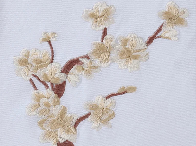 Step into legend with the Moonlight Kitsune Embroidered T-Shirt, featuring intricate embroidery of the mystical fox spirit beneath a crimson moon and blooming sakura. A timeless symbol of mystery, wisdom, and transformation, the kitsune comes to life in exquisite detail across the back.