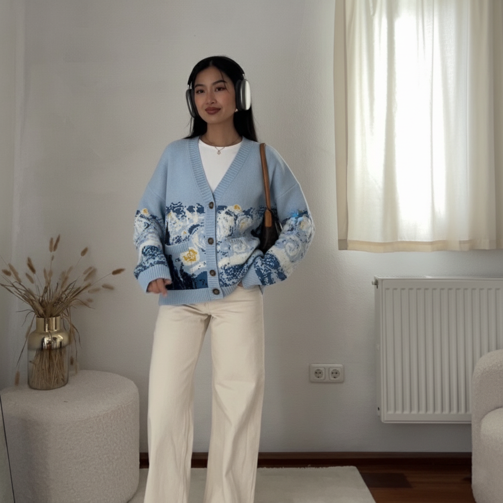 1x Van Gogh Starry Night Knitted Cardigan sweater