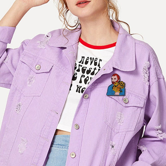 Van Gogh with sunflowers enamel pin